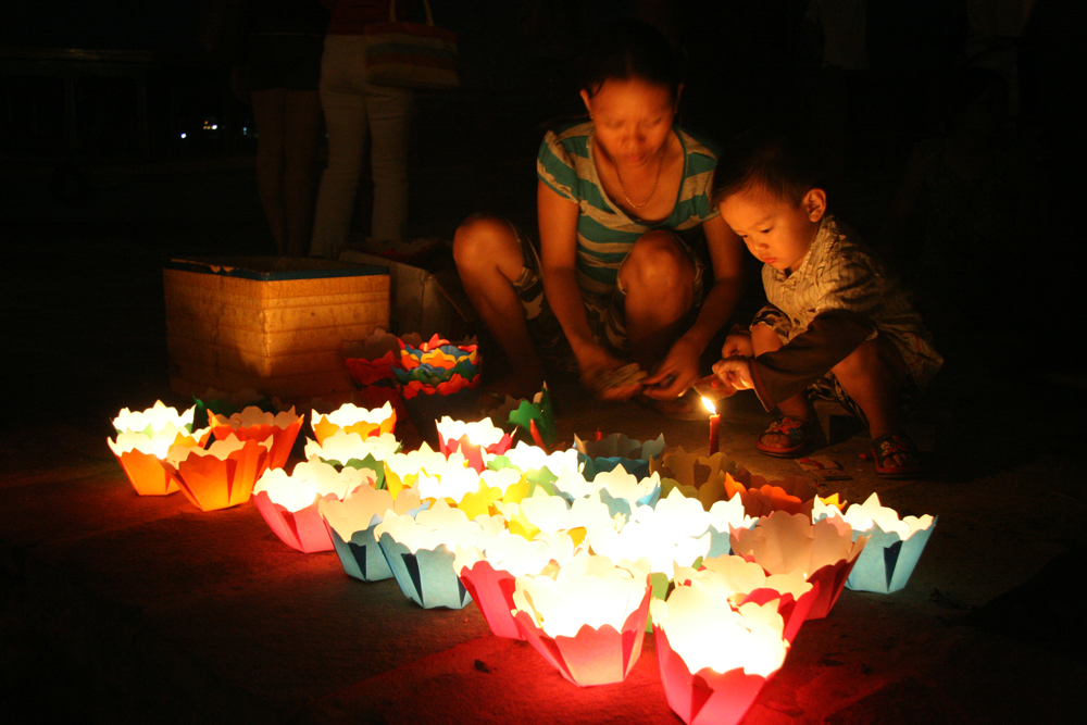 VIETNAM Enfant allumant des lampions Hoi An