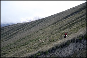 EQUATEUR Berger et lamas sur les flancs du Chimborazo