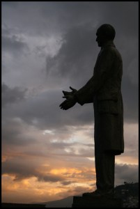 EQUATEUR Statue et coucher au soleil Quito 2008