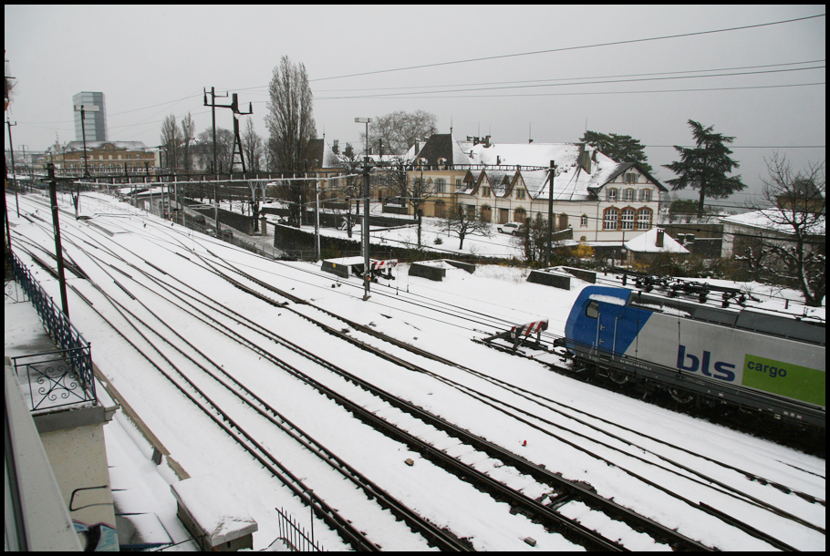 SUISSE Ouest de la gare de Neuchatel sous la neige mars 2008